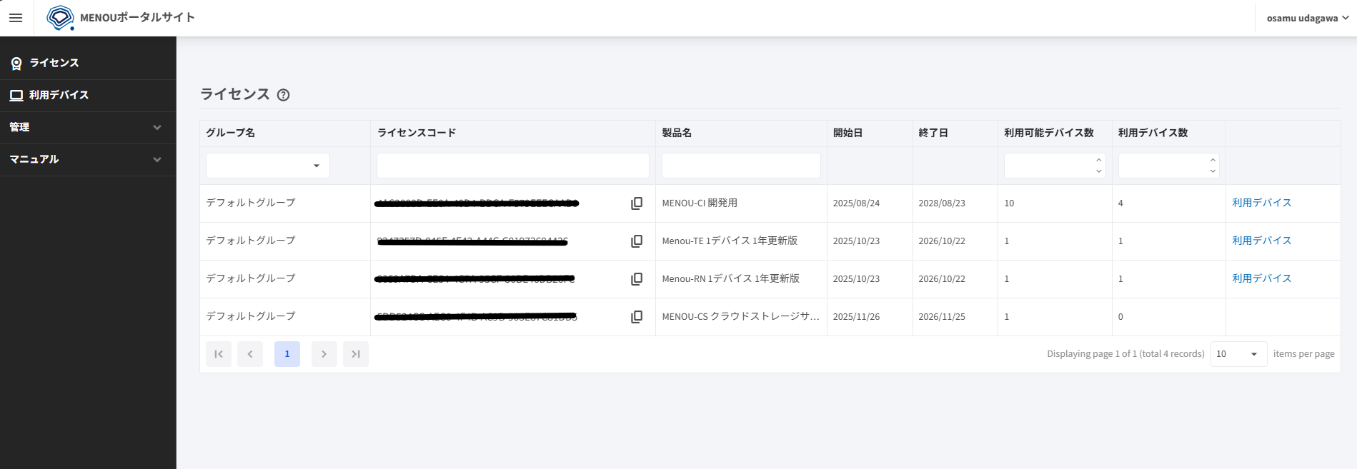 ポータルサイトでは、お持ちのライセンスの確認やユーザー管理などが行えます。