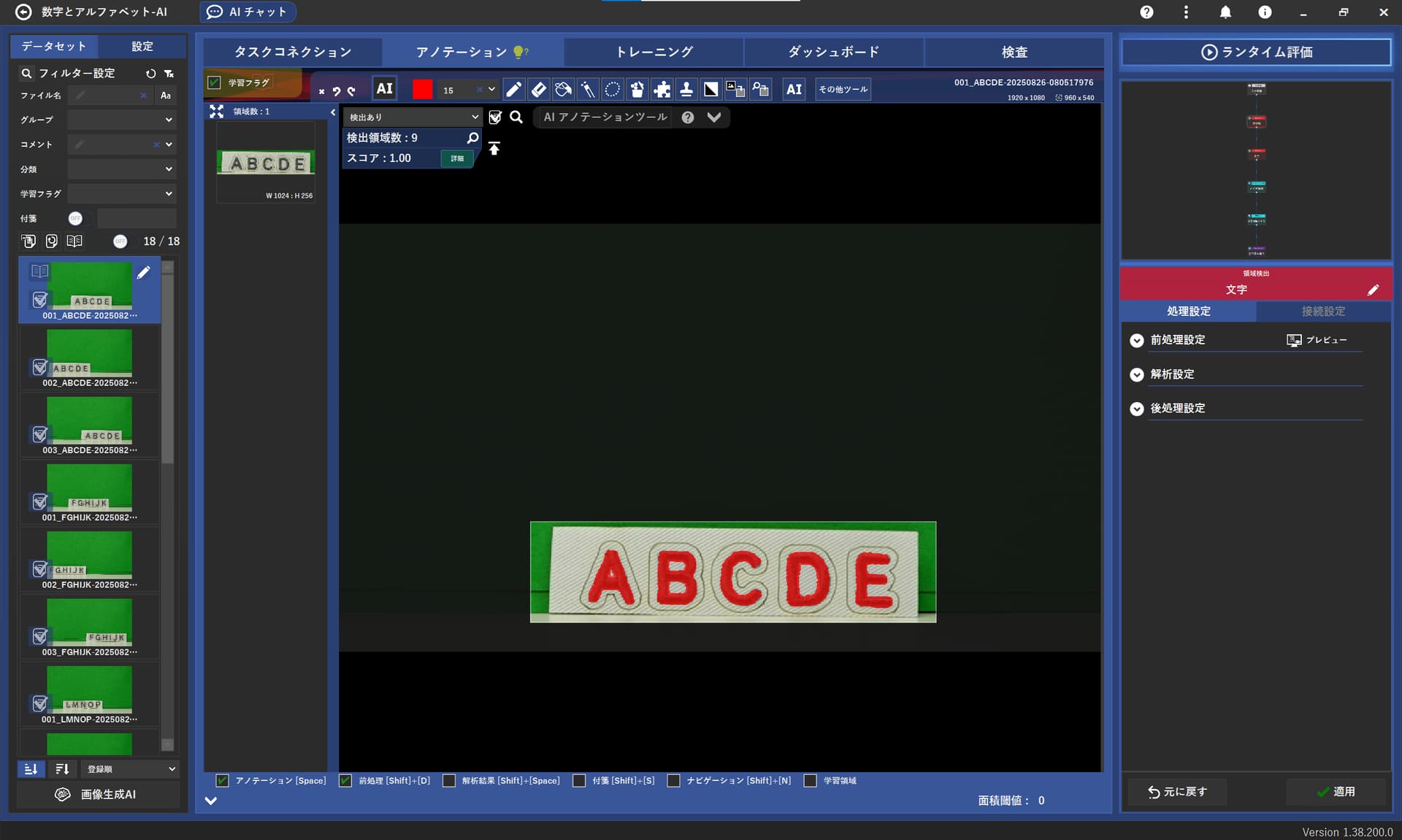 3.文字部タスクを開き、文字のあるプレートを塗りつぶし学習させる