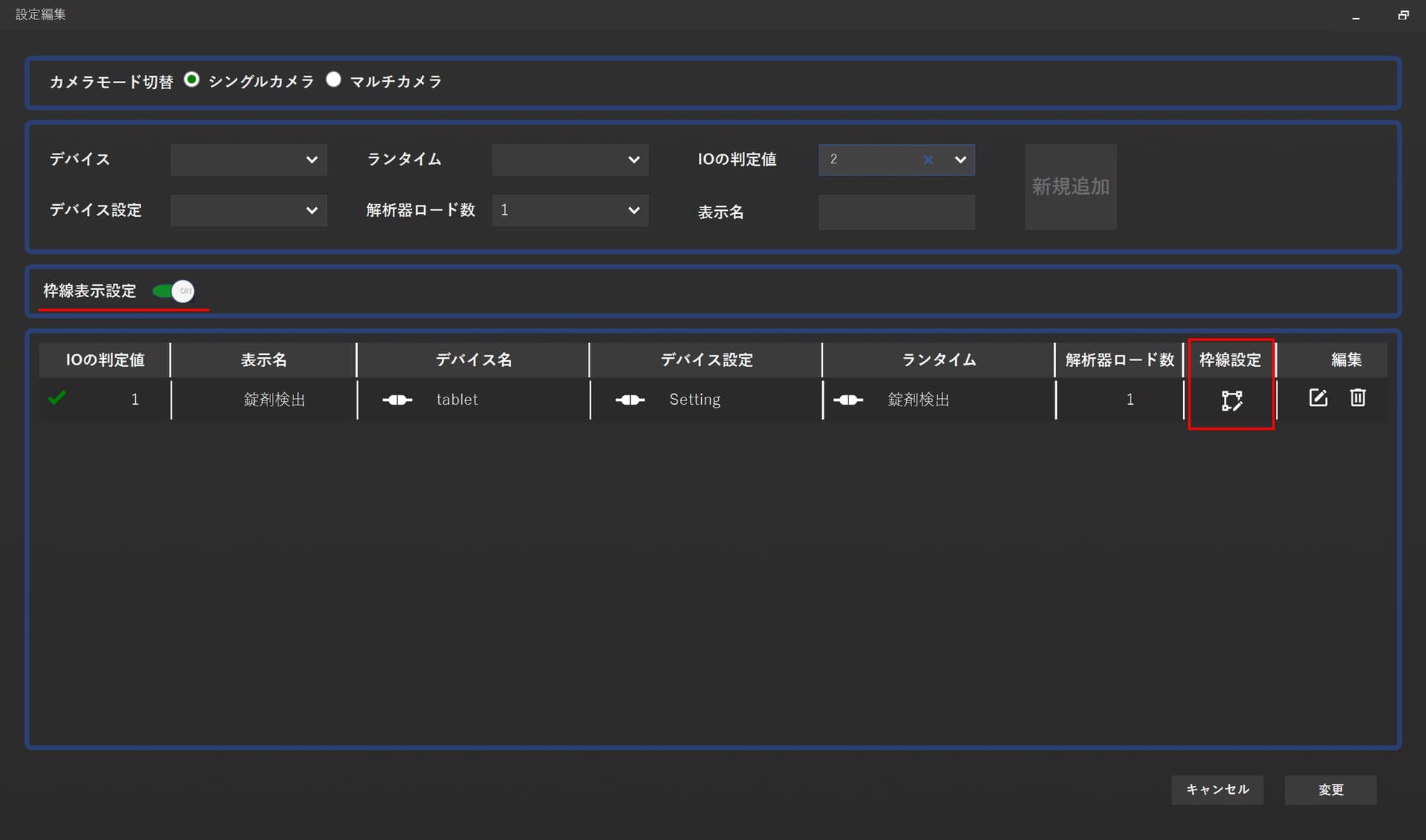 この列項目の編集アイコンを押下することによりIO判定値ごとに枠線設定が可能です。